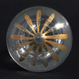 Tre bottigliette in vetro con particolari dorati, alt.max cm 26, XX secolo, (segni del tempo).