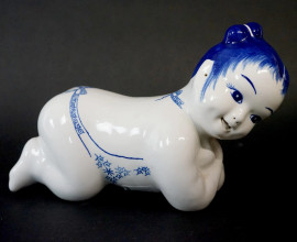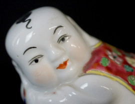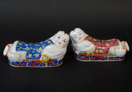 Tre sculture in porcellana policroma raffiguranti bambini orientali, misure max 16x25, Cina, XX secolo, (difetti).