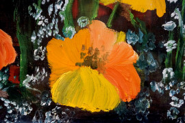 Vaso con fiori, olio su tela, cm 32x49, entro cornice
