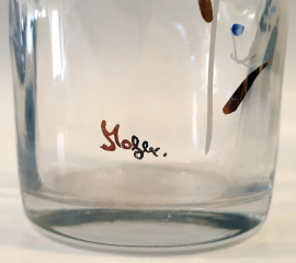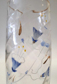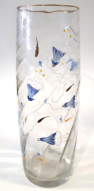 Vaso da fiori in cristallo decorato a mano con motivi floreali e rifiniture in oro zecchino, altezza cm 30, firmato