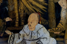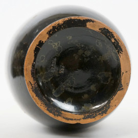 Vaso in terracotta laccata con decoro dorato di gusto orientale, cm h 34,5, XX secolo, (difetti).
