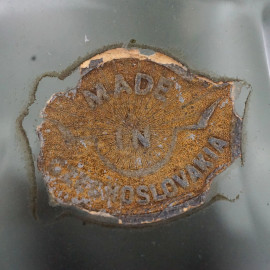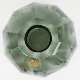 Vaso sfaccettato in vetro color verde bottiglia, cm h 16,5, manifattura slovacca, XX secolo.