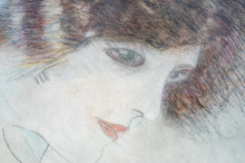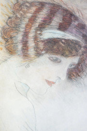 Volto di donna, tecnica mista su carta, cm 37x27, siglato "SL", entro cornice, (difetti sulla carta).