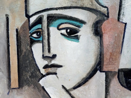 Volto, olio su cartone, cm 32,5x26, firmato, entro cornice.