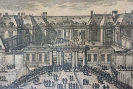 Adam Pérelle (1638-1695), Veue et perspective du Chasteau neuf de S. Germain en Laye, incisione, cm 22x30, entro cornice, (difetti)