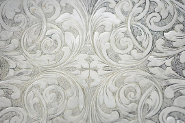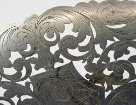 Alzata in argento traforato, inizi XX secolo, decori incisi a tralci vegetali, diam. cm 34,5, peso gr. 730