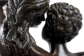 Amanti, scultura in bronzo, cm h 63, base circolare in marmo