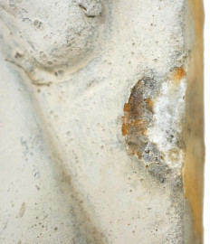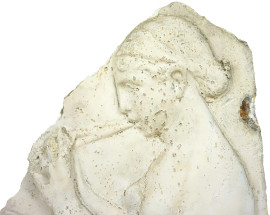 Antico bassorilievo in marmo raffigurante suonatrice di tibia, cm 33,5x24, (frammentario, difetti).