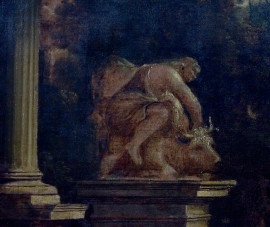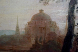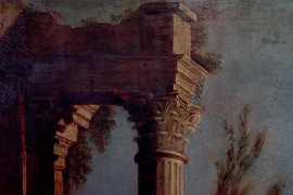 Attr.a Antoine Pierre Patel (1648-1707), Capriccio architettonico con figure, olio su tela, cm 131x119, entro cornice.