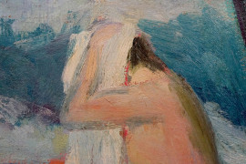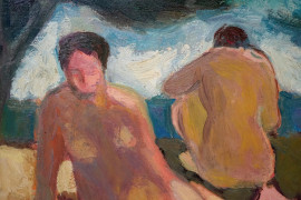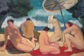 Bagnanti, olio su tela, cm 50x70, firmato e datato a tergo.