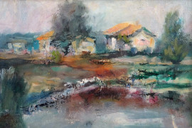 Paesaggio, olio, su tavoletta, cm 21x29,5, entro cornice