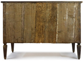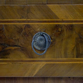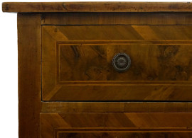 Cassettone Luigi XVI lastronato in noce e radica