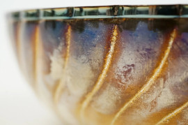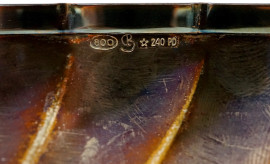 Centrotavola in argento baccellato, cm 5,5x21, Padova, XX secolo, argentiere CB, peso gr. 322