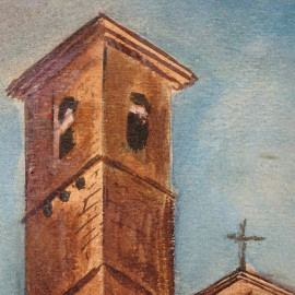 Chiesa di S.Giovenale ad Orvieto, acquarello su carta, cm 35x22, firmato, entro cornice.