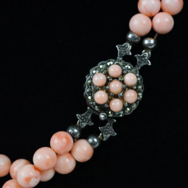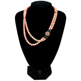 Collana degradé a due fili in corallo rosa con chiusura in argento 925, lunghezza cm 48, peso gr.83