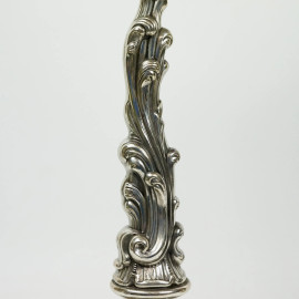 riccamente cesellati e sbalzati a motivi fogliacei, cm h 46, peso totale gr. 3880, (appesantiti).
