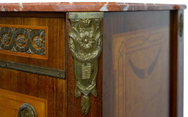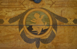 Coppia di comò in legno impiallacciato in varie essenze, XX secolo