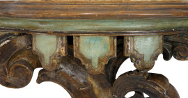 Coppia di consoles stile barocco in legno laccato ed intagliato, costruite con elementi del XVIII e XX secolo