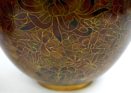 Coppia di potiches cloisonnè, Cina, XX secolo, interamente decorate con motivi di fiori orientali, cm h 19