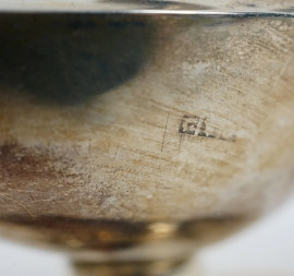 Due piccole lucerne in argento, Egitto, inizi XX secolo, cm 7x14,5x5, peso gr. 200 circa, (difetti, mancante tappo)