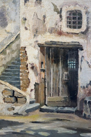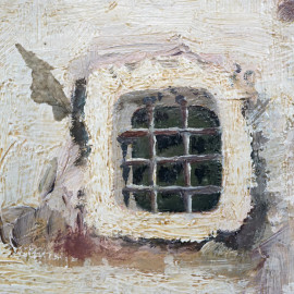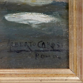 Esterno, olio su cartone telato, cm 35x25, firmato, entro cornice.