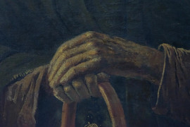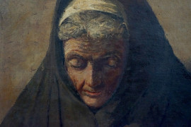 Anziana con rosario, olio su tela, cm 87x63, datato 1880.