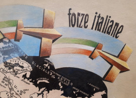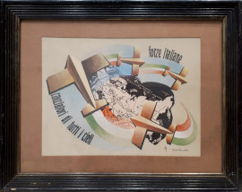 Forze italiane cacciatori di tutti i cieli, aeropittura a tecnica mista su cartone, cm 26x34, firmato in basso a destra