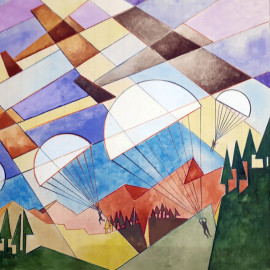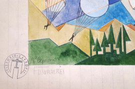 Futuraerei, aeropittura a tecnica mista su carta, cm 24x26, timbro firma e titolo in basso a sinistra
