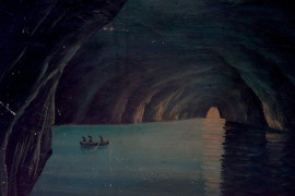 Grotta, olio su tela, cm 50x70, firmato, entro cornice, (cadute di colore).