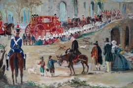 La processione, tempera su carta, cm 70x101, firmato e datato M.Rappini 1965, entro cornice.