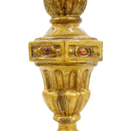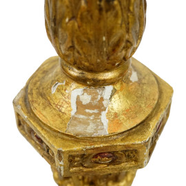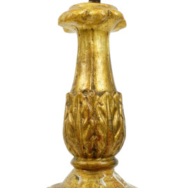 Lampada da tavolo con fusto in legno intagliato e dorato, inizi XIX secolo, cm h 50, (difetti).