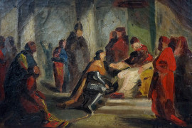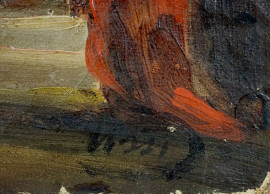 L'incoronazione, olio su tela, cm 16x20, firmato S.Ussi, (lievi difetti).
