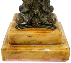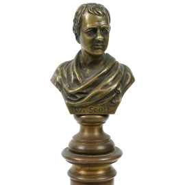 Lord Byron e W. Scott, due bustini su colonne in bronzo, basi in marmo, alt. cm 30, XX secolo, (basi verniciate, lievi difetti)