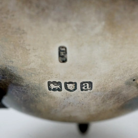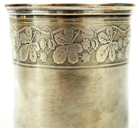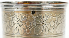 Lotto di due oggetti in argento, composto da una zuccheriera inglese poggiante su quattro piedini ed un bicchiere con particolari cesellati, manifatture diverse, peso gr. 205, (difetti).