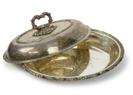 Lotto di quattro oggetti in argento e metallo argentato, composto da una legumiera, due alzatine ed una scatolina, misure max cm 14x30, XX secolo, peso gr.365