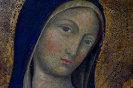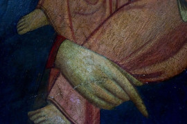 Madonna col Bambino, antico dipinto ad olio su tavola, cm 68x43,5