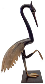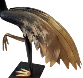 Manifattura italiana design anni '30, scultura in corno raffigurante airone, altezza cm 46