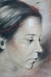 Profilo di donna, tecnica mista su carta, cm 44x34, entro cornice