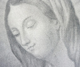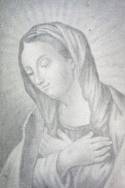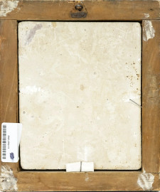 Mattonella trompe l'oeil raffigurante la Vergine, cm 21,5x18, XX secolo, entro cornice.