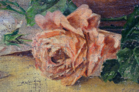Natura morta - Rose, olio su tela, cm 25x35, firmato, entro cornice, (lievi difetti sulla tela).