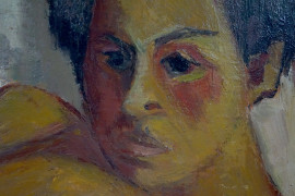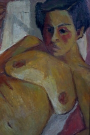 Nudo di donna, olio su masonite, cm 64,5x53,5, siglato F.C., entro cornice