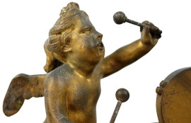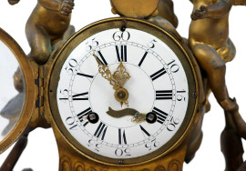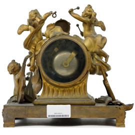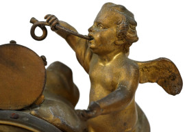 Orologio da tavolo in bronzo dorato Chevelier Paris, XIX secolo, quadrante circolare a doppia numerazione, cm 31,5x30x18, (meccanismo da revisionare)