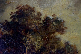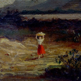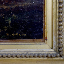 Paesaggio con figure, olio su tela, cm 33x42, firmato W. Holland, entro cornice.