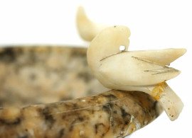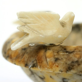 Piccola acquasantiera in alabastro con quattro colombe, fine XIX- inizi XX secolo, cm h 15, (difetti).