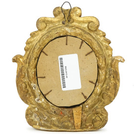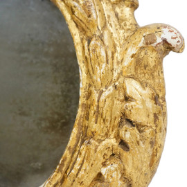 Piccola specchiera in legno intagliato, scolpito e dorato, XVIII secolo, cm 20x19, (difetti).
