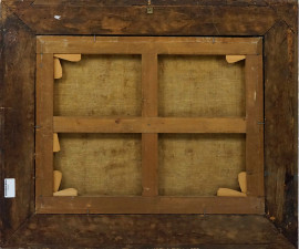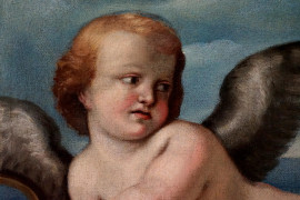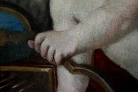 Pittore bolognese del XVII secolo, Cupido, olio su tela, cm 55x71, entro cornice