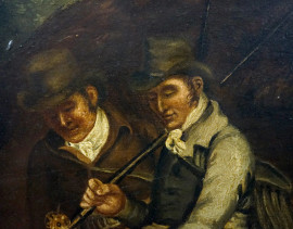 Pittore del XIX secolo, La pesca, olio su tavola, cm 39x54,5, entro cornice.
