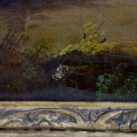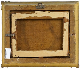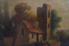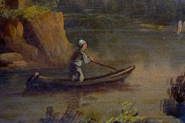 Pittore del XIX secolo, Paesaggio con rematore in barca, olio su tela, cm 24x32, entro cornice.