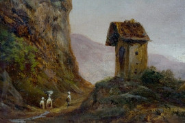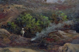 Pittore del XIX secolo, Paesaggio laziale, olio su tela, cm 33x25.