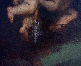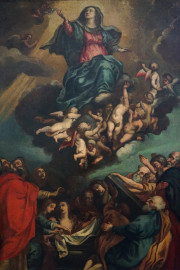 Pittore del XVII secolo, Assunzione della Vergine, olio su tela, cm 107x77, entro cornice, (difetto sulla tela)